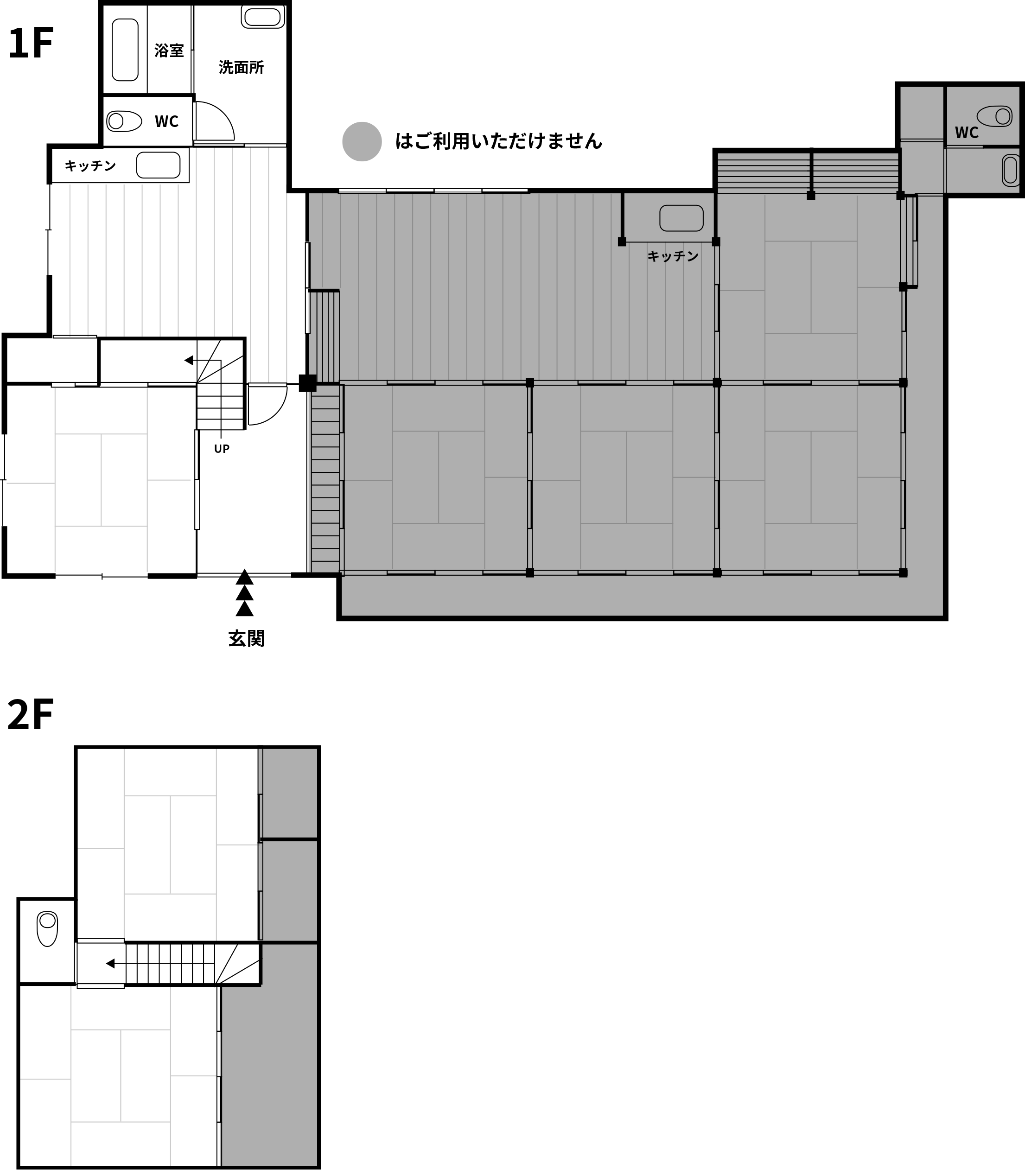 2階建ての民泊用空間には、団欒を楽しめる居間や台所、旅の疲れを癒す二つの寝室を備えています。 山梨への観光旅行はもちろん、山登りやトレイルラン・ロードバイクなどの拠点としていかがでしょうか。